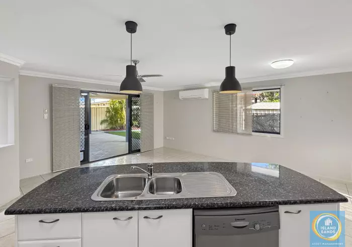 - Kitchen with gas cooktop, electric oven, dishwasher and island bench & good size fridge cavity