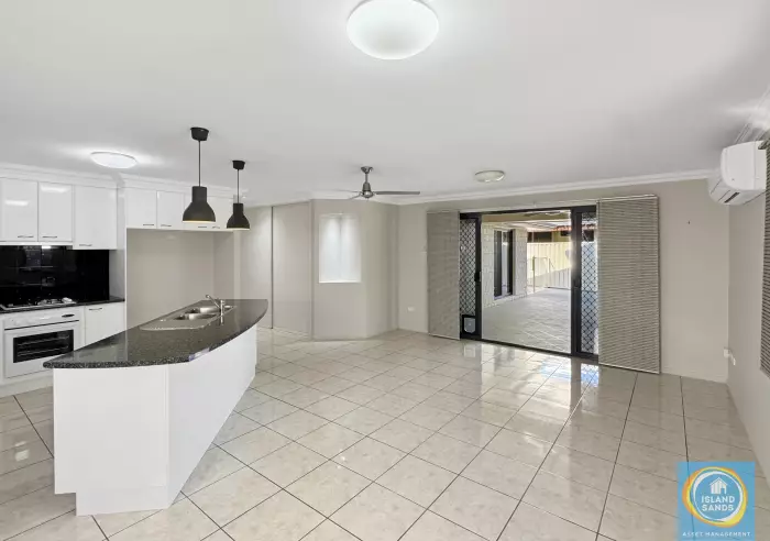 - Air conditioned open plan living and dining area with glass sliding door to entertaining area